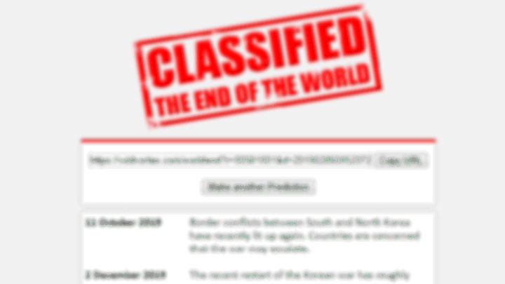 This site is as simple as it gets. You click the button and a random prediction on how and when the world will end is generated for you, including a shareable URL.